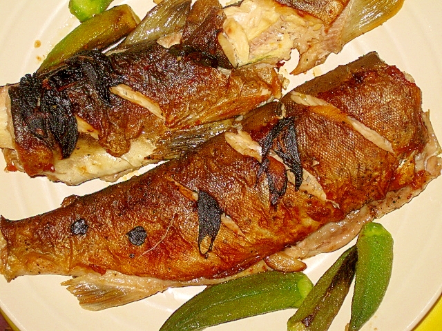 焼き魚 ヤマメと鮎の塩焼き 今日の夕飯 まるねこの雑記ブログ
